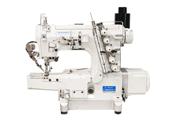 Máquina collarete cilíndrica JM WINSTON con corte de hilo, panel regulador de velocidad, motor incluido y área de trabajo iluminada.