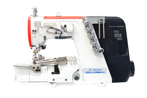 Máquina collarete JM WINSTON electrónica plana con posicionador de aguja y regulador de velocidad.
