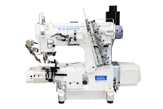 Máquina collarete cilíndrica JM WINSTON con refilado derecho para boxer, sistema de succión de basura, área de trabajo iluminada y regulador de velocidad.