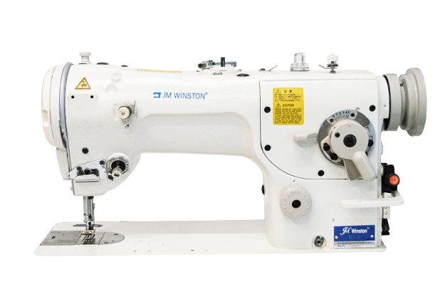 Máquina de coser industrial zigzag mecánica JM WINSTON con regulador de freno para remate manual.